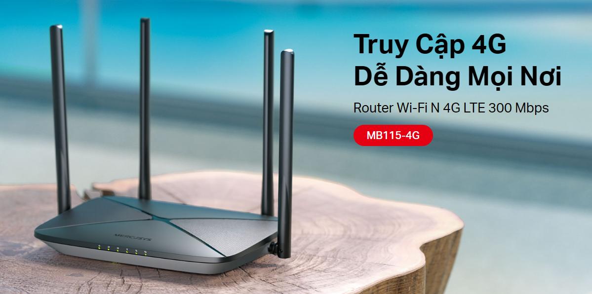 Bộ phát Wifi Mercusys 4G MB115-4G là thiết bị phát internet không dây lý tưởng cho những khu vực chưa có cáp quang hoặc cần mạng dự phòng ổn định. Chỉ cần lắp Nano SIM 4G LTE, thiết bị có thể phát Wifi tốc độ lên đến 300Mbps trên băng tần 2.4GHz, đáp ứng tốt nhu cầu học tập, làm việc và giải trí hàng ngày. Mercusys MB115-4G được trang bị 4 ăng ten ngoài giúp tăng cường khả năng thu sóng và mở rộng vùng phủ, đảm bảo kết nối ổn định cho nhiều thiết bị cùng lúc. Giao diện quản lý trực quan, dễ sử dụng, hỗ trợ bảo mật WPA WPA2 giúp an tâm khi sử dụng. Sản phẩm chính Hãng phân phối bởi Siêu thị Điện thông minh, phù hợp cho gia đình, cửa hàng, văn phòng nhỏ và hệ thống camera giám sát từ xa.