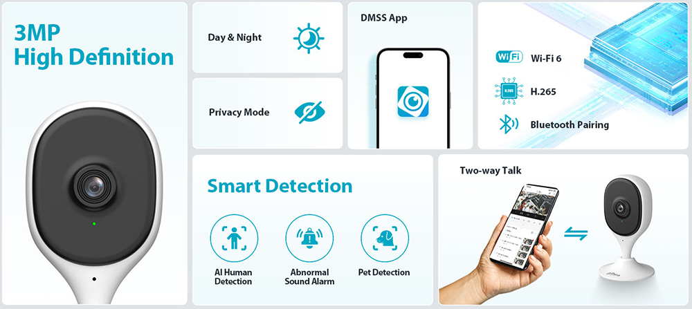 Camera DAHUA DH-C5A là sản phẩm Camera Wifi độ phân giải 5MP cố định, góc rộng, sử dụng trong nhà của Hãng Dahua. Sản phẩm được thiết kế gọn nhẹ, lắp đặt linh hoạt, hình ảnh rõ nét, nhiều tính năng thông minh