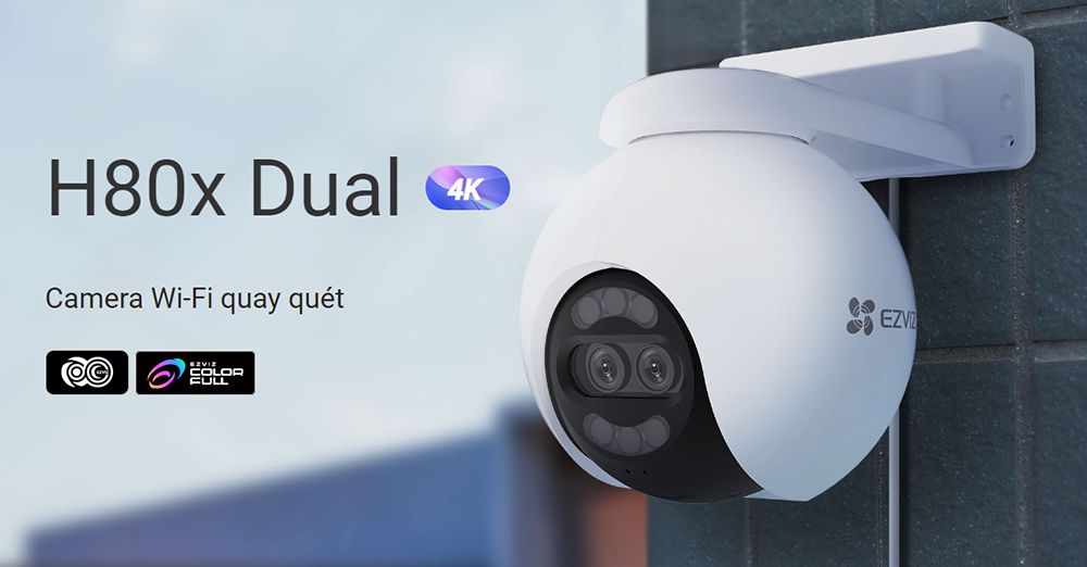 Camera EZVIZ H80x Dua là camera an ninh ngoài trời tiên tiến tích hợp hai ống kính thông minh, nhạy bén với cường độ ánh sáng, bóng tối của môi trường, giúp ghi lại những khoảnh khắc quan trọng. Với công nghệ ColorFULL do EZVIZ độc quyền và độ phân giải 4K sắc nét, H80x Dual không cần bất kỳ đèn spotlight vẫn ghi hình cảnh vật chi tiết sống động trong không gian tối. Được thiết kế khả năng xoay và nghiêng linh hoạt, camera tự động theo dõi các hoạt động, tuần tra các khu vực quan trọng và tự động kích hoạt cảnh báo tức thì, mang đến sự an tâm tuyệt đối.