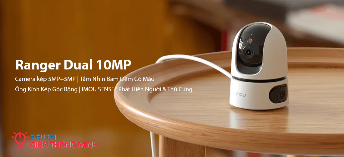 Camera kép 2 mắt 5MP + 5MP: Cung cấp tổng độ phân giải 10MP, giúp ghi hình sắc nét hơn. Một camera quan sát được 2 hướng khác nhau giám sát toàn diện và chi tiết.