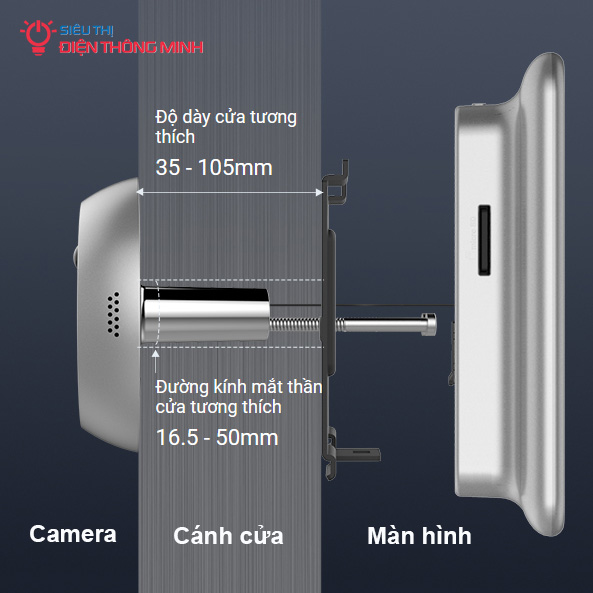 ✔ Lắp đặt trong vài phút – Gắn trực tiếp vào lỗ nhòm cửa hoặc dán chắc chắn với băng keo siêu bền.