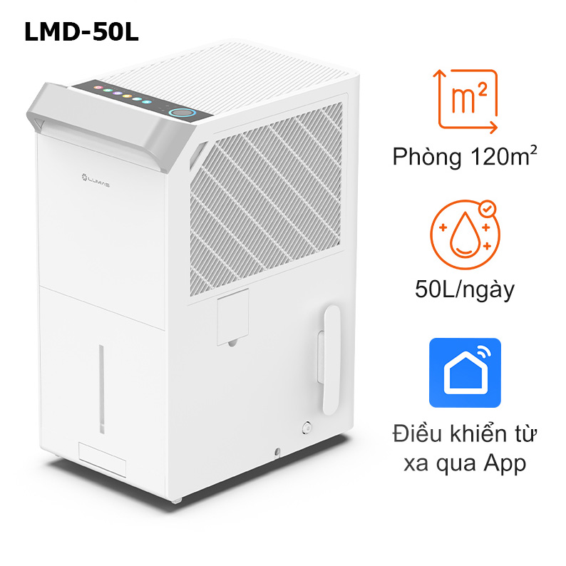 - Lumias LMD-50L dành cho không gian diện tích lớn độ ẩm cao hoặc nhu cầu sử dụng liên tục cường độ cao như nhà nhiều tầng văn phòng lớn kho lưu trữ giúp kiểm soát độ ẩm ổn định và hiệu quả lâu dài.